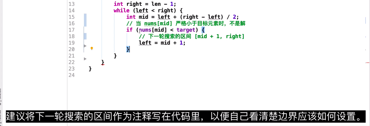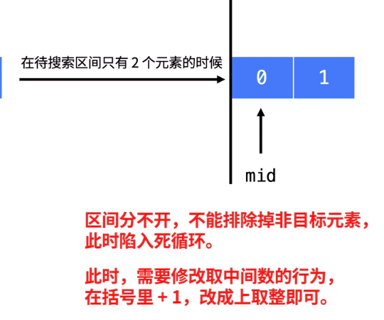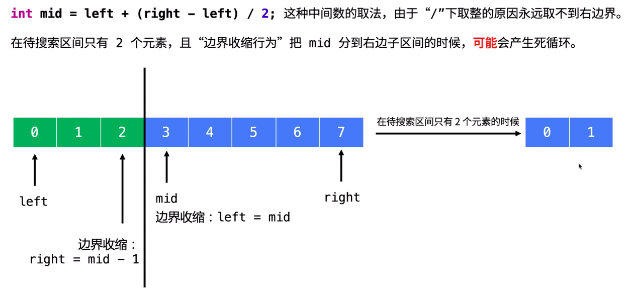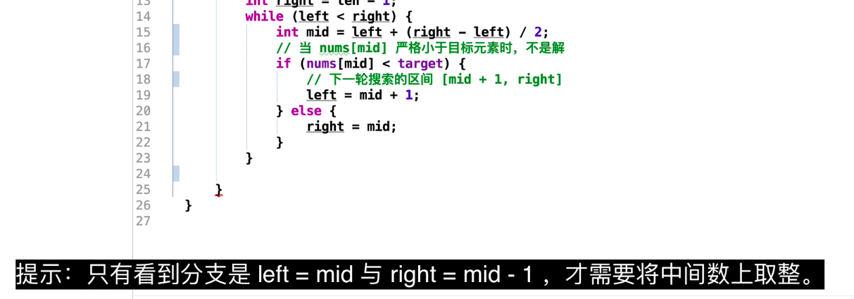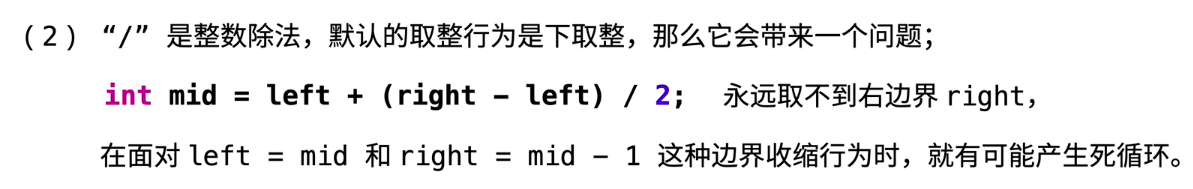 int mid = left + (right - left + 1)/2; // notice! +1