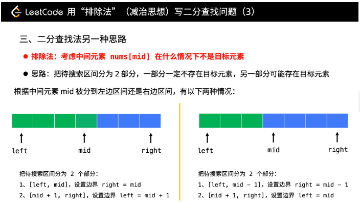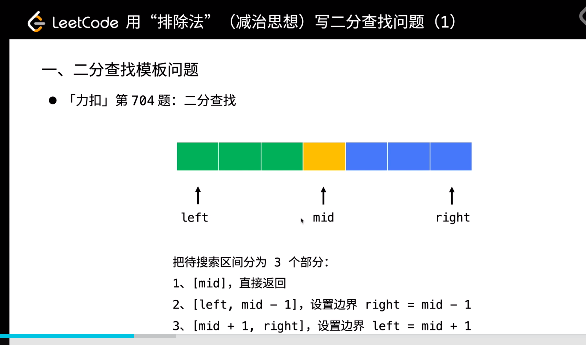 decrease and conquer, 朝排除 mid 思考, 分為兩部份
