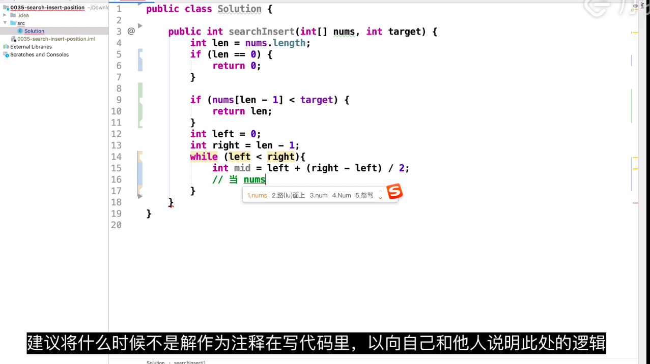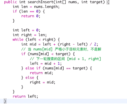 if (nums[mid] < target) { // 往右半部找